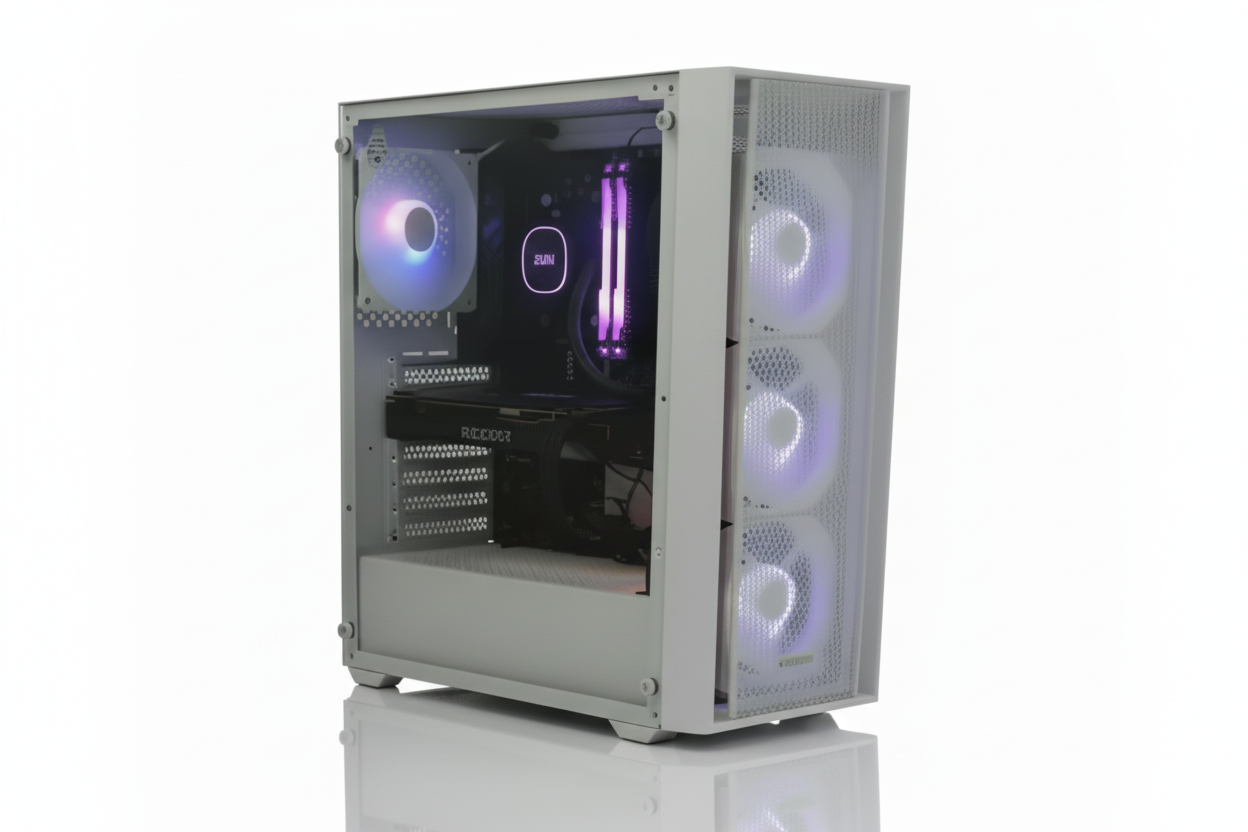 Dieser Gaming-PC bietet eine solide Mittelklasse-Leistung für flüssiges Full-HD-Gaming und den täglichen Einsatz.